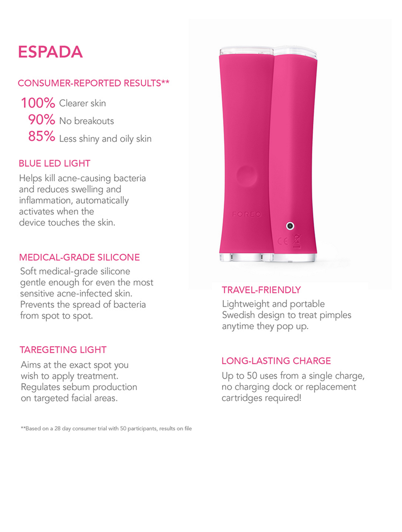 targeting espada foreo Coppertone Perfect UV Cut Gel Cream SPF50+ PA++++ I, II, andIII! foreo espada foreo cobalt I am my own guinea pig I used the Espada 3x a day consecutively and in just 3-4 days the pimples were flattened, leaving a spot without bumps. I panic at the thought of spiraling back down to the feelings of self-consciousness and low self-confidence, so I gladly welcomed a device that could tame my breakouts without having to get an expensive, inconvenient treatment at a dermatology clinic. The dark spots can be treated by exfoliating regularly.