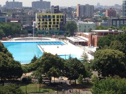 Its $120 per person and includes lunch, dinner and all the resorts amenities, including four pools. pools pool nyc swimming hotel mccarren rooftop york private thrillist summer State of New York - East River State Park is 2113 feet from the McCarren Hotel & Pool. McCarren Hotel & Pool (New York, United States of America), New