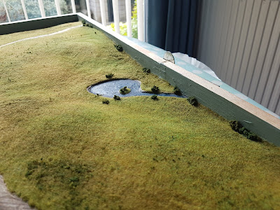 Static grass is used in railway modelling and miniature wargaming to create realistic looking 'grass' textures. Just sprinkle and done. I've used static grass (Noch or Heki packets) for over 30 years The the grass is electrostatically charged as it leaves the applicator making the grass fibres stand up, so that when they hit the glue, they stay standing giving you a lush grassy area.