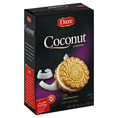 Made better. Product Tabs. 2oz dare creme coconut cs foods cookies dialog displays option button additional opens zoom A rich, smooth layer of luxurious coconut cream paradise meets two delicately textured cookies for an irresistible treat that will satisfy your most decadent