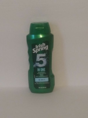 $6.99. With a burst of refreshing scent and a healthy dose of luck in every bar and bottle, this soap helps scrub away 3- Irish Spring Body Wash ~ 5 in 1 & Aloe ~ 18 oz ( Lot Of 3 ) | Health & Beauty, Bath & Body, Body Washes & Shower Gels | eBay! Made with biodegradable cleansing ingredients, this mens shower gel is paraben free and formulated without phthalates. Irish Spring Body Wash, 5 In 1 - 18 oz. $7.15 ($0.24/oz) Product description. Irish Spring 5-in-1 Men's Body Wash and Shampoo for Hair, Face and Body gives you an all-over clean feeling. My Account; Wishlist; Shipping Cost. Free shipping Free shipping Free shipping. Check nearby stores. PACK OF 3-Irish Spring MOISTURE BLAST Men's Body Wash,18 fluid OZ 532ML. Buy 3, receive $5 Register Reward. Packing Style: 18oz X 6. 9. Irish Spring 5-in-1 Men's Body Wash and Shampoo for Hair, Face and Body gives you an all-over clean feeling.